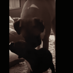 Having a great mentor helps youngsters find their way in life. It’s true for dogs as it is for humans, and we’re loving this household’s dog mentors. These adult dogs just welcomed a newcomer into the fold, and as expected, there was stuff the young puppy …