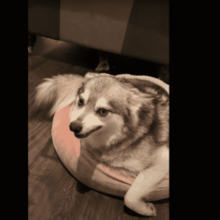 Dogs love to stay close to each other, but they also love their personal space as this Siberian Husky would prove. Bernese Mountain Dog Bolt would learn this important lesson from a fur buddy. On this day, Bolt had his huge leg on his buddy’s bed …
